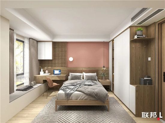 女儿房运用粉色系墙面打造,在保留温馨舒适的设计之外,还赋予空间大片原木色,引出茁壮成长的美好寓意,留给青春期更多可能。