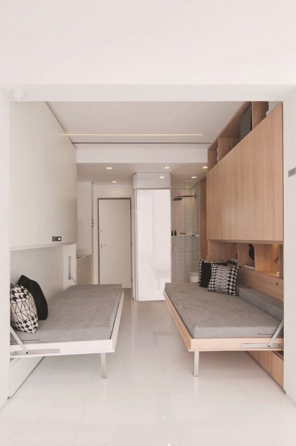 小户型通常家里每个空间都比较小,与其住着压抑,倒不如直接将隔墙打通,仅靠一个移动卡座,就能实现收纳、休闲、办公和睡觉4大功能,直接将客厅、卧室和书房3大功能合二为一,只需要10㎡就足够了!