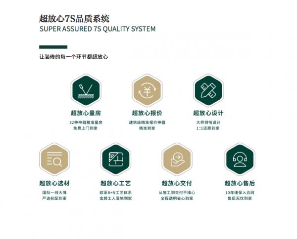 东易日盛对客户推出“7S品质系统”,包括超放心量房、超放心报价、超放心设计、超放心选材、超放心工艺、超放心交付、超放心售后。通过七大版块49项服务,为业主提供超放心装修体验。国家质保是2年,东易日盛延长至10年,出现任何问题都可以找售后解决,整个过程都按照施工计划严格执行,让每个家都安全环保,放心居住。
