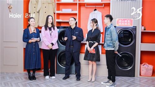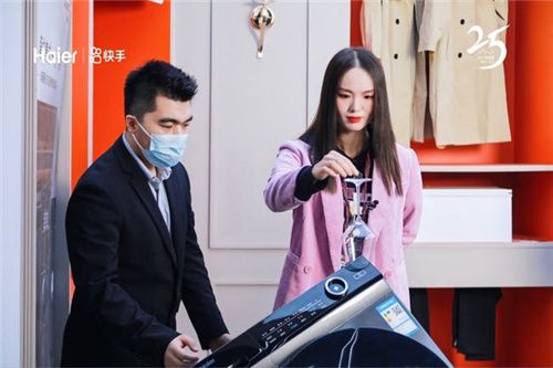 首先,三翼鸟针对智慧卧室、智慧客厅、智慧阳台等5大生活空间,定制了5大场景25款爆品。在“海尔感恩月·快手之夜”现场,Mr玲爷和姜小柔吖分别带队PK,通过挑战的形式将海尔智家的硬实力进行了展示。比如在斜立运转的洗衣机上成功放置高脚杯、在开启的空调前叠了5层泡泡塔……