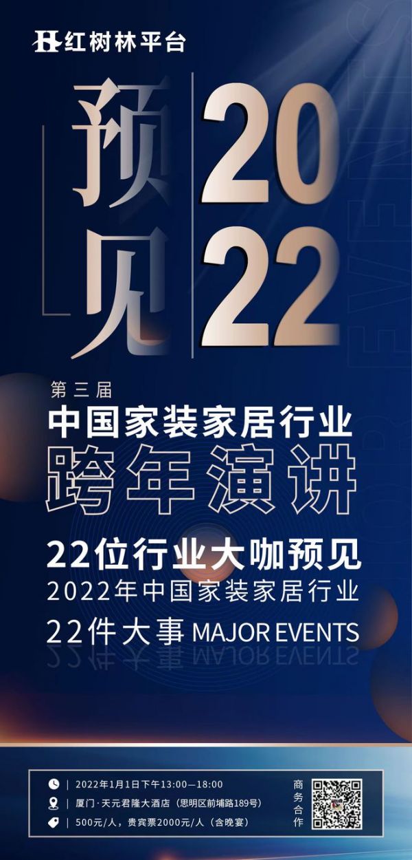 预见2022,1月1日,红树林平台创始人许瑞联合网易家居,邀请了22位行业大咖对2022年进行行业分析,为全国的装企同行们预测2022年的挑战与机遇,分享应对策略,共享行业先机。