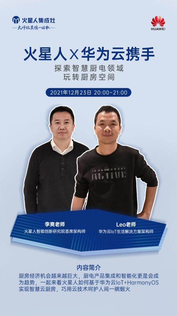 通过直播交流,为后续火星人智慧厨电基于华为云IoT智联生活连接HarmonyOS生态解决方案的规划落地变得更为清晰可见,双方联合打造云端智慧厨房,进一步推动智慧生活走进千家万户,提供了无限可能。