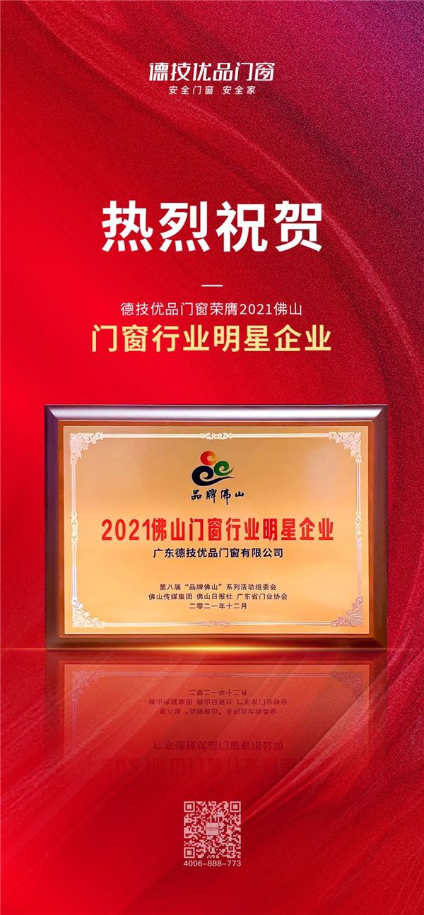门窗快讯|德技优品门窗荣膺“2021佛山门窗行业明星企业”称号