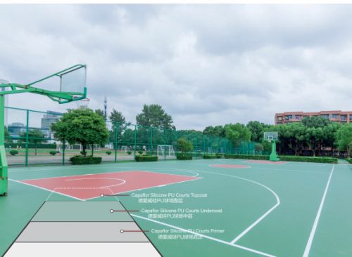 篮球是一项较为激烈的运动,学生发生碰撞、摔倒的可能性也较高。德爱威硅PU球场地坪系统采用了高分子互穿网络技术研制的可逆性结晶结构的缓冲层设计,具备卓越的拉伸与撕裂强度,弹性高、不开裂,符合人体工学原理并满足运动物理特性的需要。涂布后材料具有流平性,有适当的弹性和硬度,能提供良好的球速和球感。