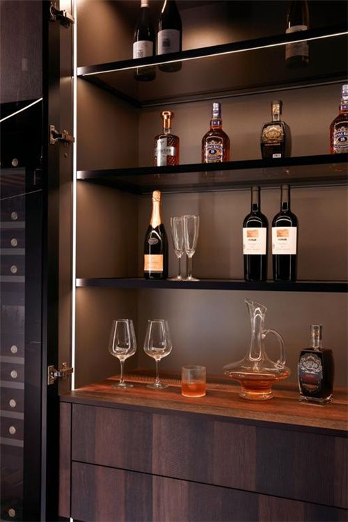 好友相聚,红酒是不可或缺的情感沟通催化剂,通过杯壁欣赏氤氲红酒的色泽,轻微摇晃,将杯中美酒细细品酌,杯酒下肚、倾吐衷肠,让彼此感情升温。科勒厨房橱柜玫珞系列特有的嵌入式酒柜拥有周全的三层温区,可分区调控温度与湿度,抽拉式榉木层架提供专业富足的收藏空间,让不同格调的美酒保持其独特风味,满足爱酒人士存酒的高需求。无论是家人欢聚还是友人小酌,都能轻松品尝到最合适的那一款醇酿。
