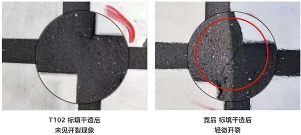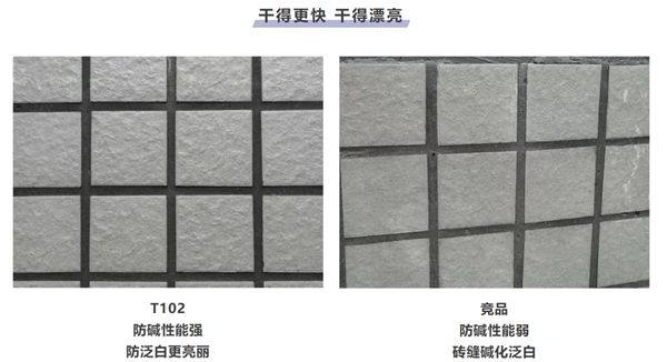 科顺家庭防水-T102 彩色填缝剂与竞品在同一温度、湿度环境试验下干得更快,有效对抗碱化泛白。