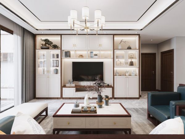 在定制柜体的时候,除了要做成“到顶式”之外,还要遵循“藏八露二”的原则,用20%的空间作为展示区域或者频繁拿放区,剩下的80%都用闭合式收纳,外观看起来整洁干净,内部也不容易落灰。如果全是开放格的话,要清理的就不止一道柜门了。