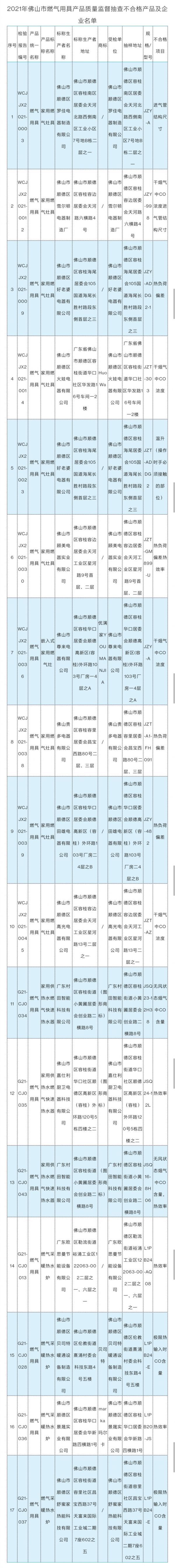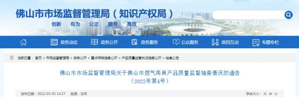 佛山市市场监管局:17款燃气用具质量不合格