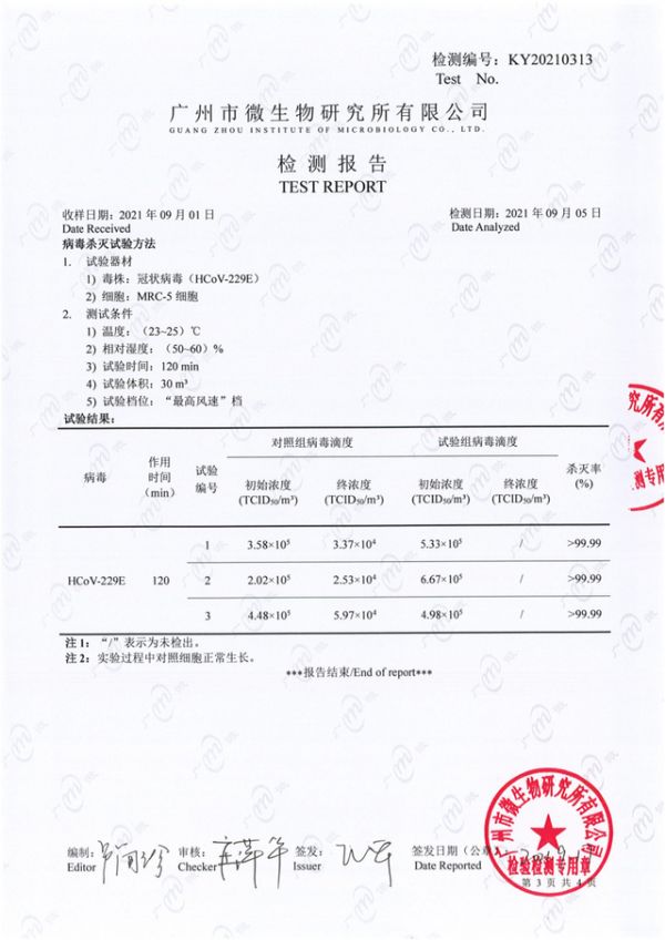 优势四:冠状病毒灭杀率大于99.99%