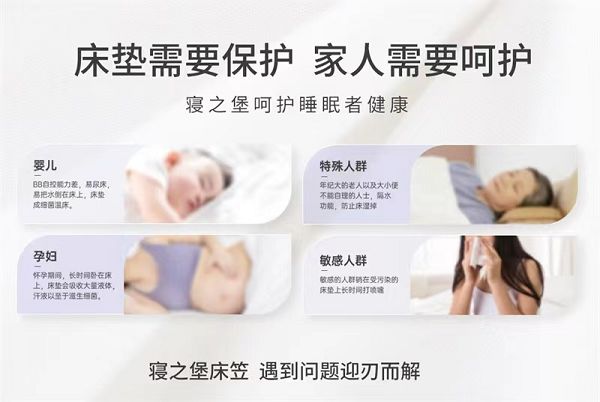 寝之堡作为倡导健康睡眠的寝具防护品牌,一直不断创新、研发、推广功能型寝具防护用品,致力于为万千家庭提供健康睡眠的解决方案,为人们提供更高品质的健康生活!