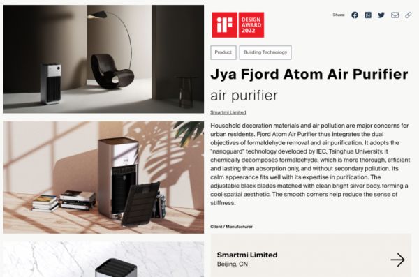 智米科技Jya除甲醛空气净化器再获德国iF设计大奖