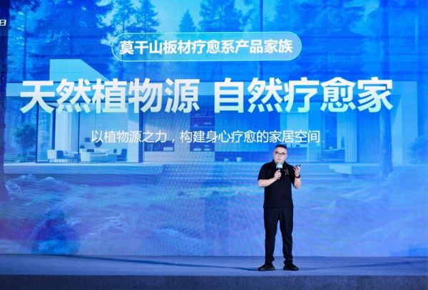 云峰莫干山板材总经理姚国良发布了莫干山板材 “疗愈系产品家族”,直击消费者日益增长的 “环保需求×健康需求×情感需求”复合型期待。
