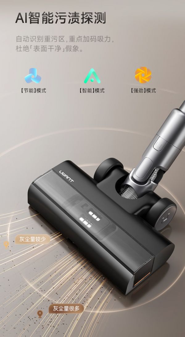 友望 AI 智能污渍探测吸尘器,自动适配场景,减少人为损耗:友望扫地僧能够AI 智能识别重污区,自动加码吸力,避免 “表面干净”,避免因手动调档不当导致电机过载,进一步延长机器寿命。