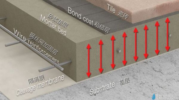其中较为典型的,是采用隔离膜(Cleavage membrane)配合钢丝网加固的砂浆垫层(Mortar bed)体系。隔离膜切断了基层与饰面层之间的刚性连接,而砂浆垫层则提供了稳定的承托能力。