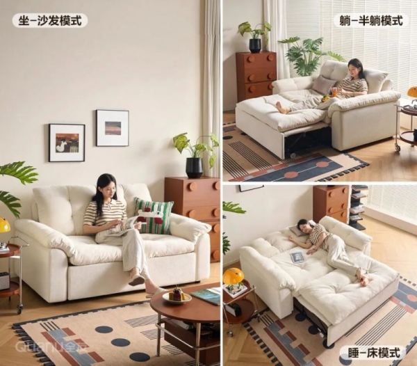 可折叠沙发:通过简单折叠,就能将沙发变成一张床,适合小户型家庭选择。
