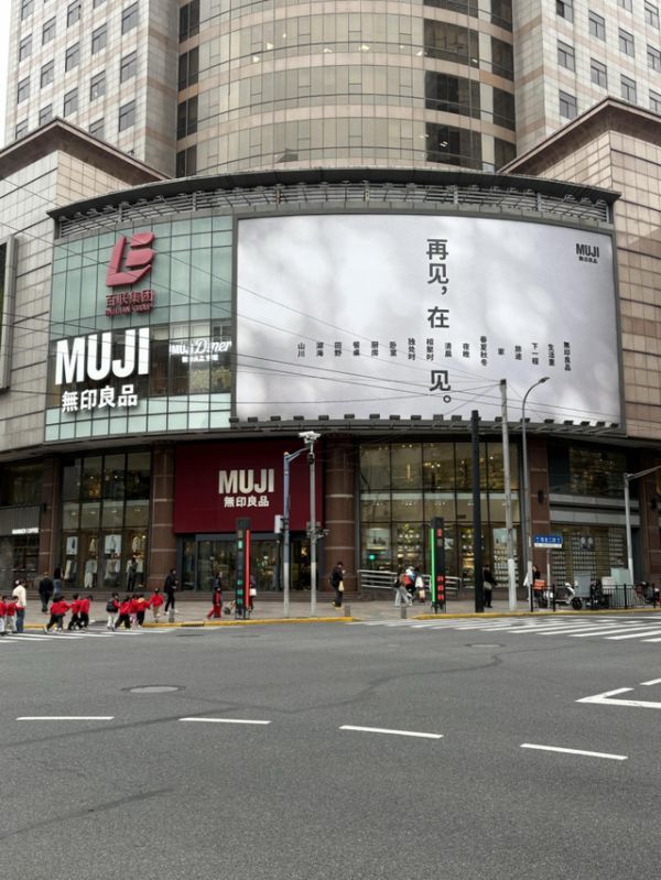 3月4日,MUJI無印良品宣布:位于上海淮海中路755的世界旗舰店将于3月31日正式结业。与此同时,门店外立面的巨幅广告牌已换上告别海报,上面写着一句简单却意味深长的话——