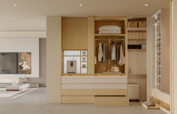 如果说“量身定制”解决的是“让柜子适配人”的个体精准度,那么“科学收纳”要回答的,则是如何将这种精准转化为系统性的生活秩序。真正有效的收纳不是技巧堆砌,而是一套系统化的解决方案。换言之,以人为核心,围绕“空间-人-物品-动线”四个维度构建全场景解决方案:通过人体工学适配身体活动范围,减少收纳疲劳;优化家庭动线,提升生活效率;根据物品生命周期合理规划存量,避免闲置浪费;运用空间数据模型精准测算容量,实现空间最大化利用。从“混乱”到“秩序”,从“难找难拿”到“秒速取用”,这套体系的核心逻辑只有一个——让空间服务于人,而非让人适应空间。